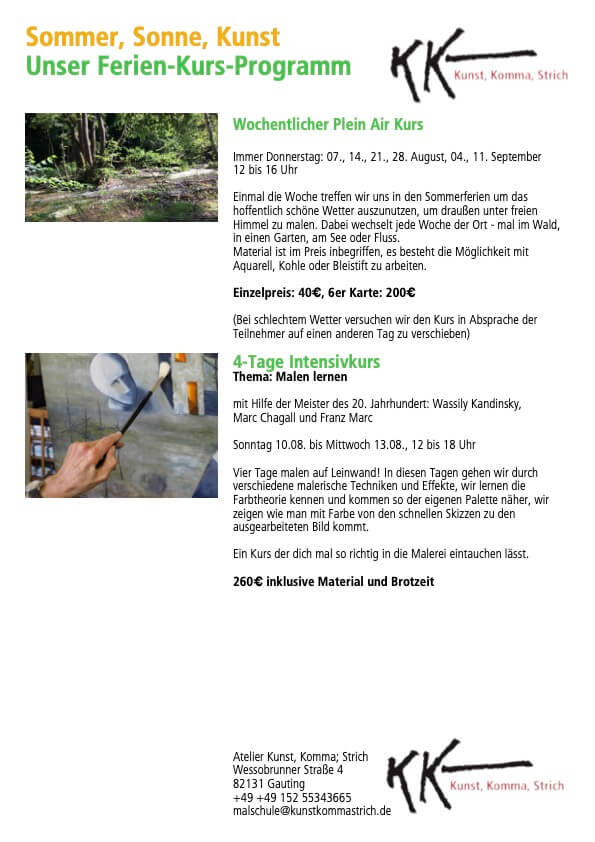 Unsere Mal- und Zeichenschule „Kunst Komma Strich“ bietet seit 2019 Kunstbegeisterten und kreativen Köpfen mit einem Atelier in der